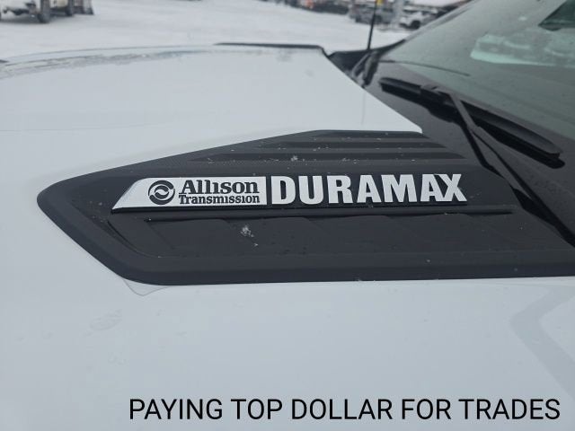 Under the hood, you'll find the legendary Duramax 6.6L V8 Turbodiesel engine, delivering an impressive 470 horsepower and an astounding 975 lb-ft of torque. Paired with a 10-speed automatic transmission and 4-wheel drive, this truck is ready to power through any terrain or towing challenge.