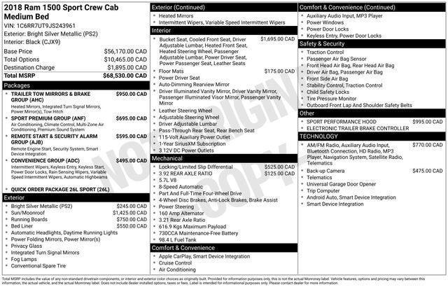 Don't miss out on this exceptional 2018 Ram 1500 Sport Crew Cab 4x4. Contact us today to schedule a test drive or to learn more about our financing options.